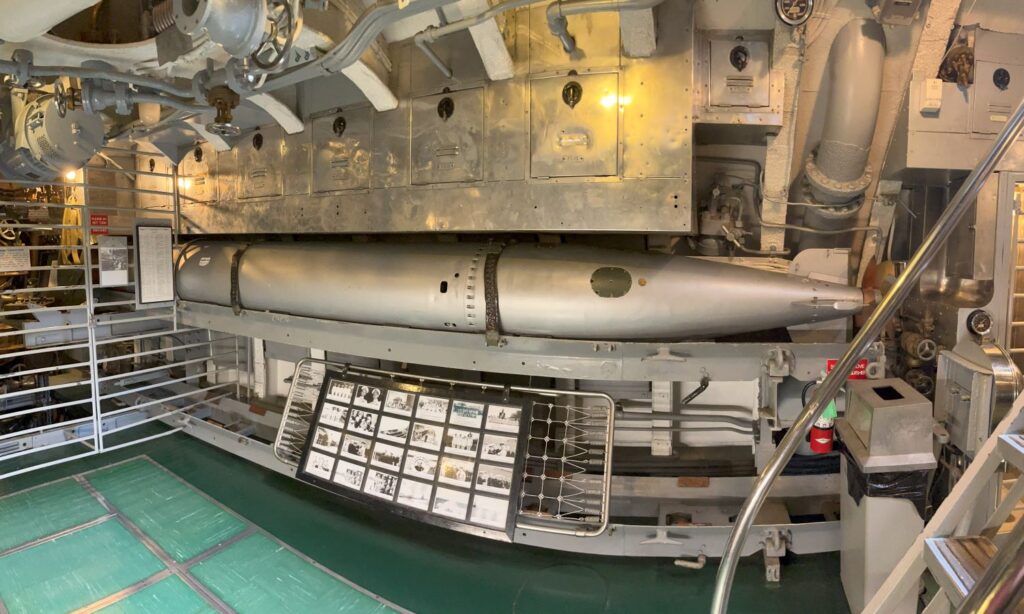 Mk 14 Torpedo in a Rack, Forward Torpedo Room, U.S.S. Drum